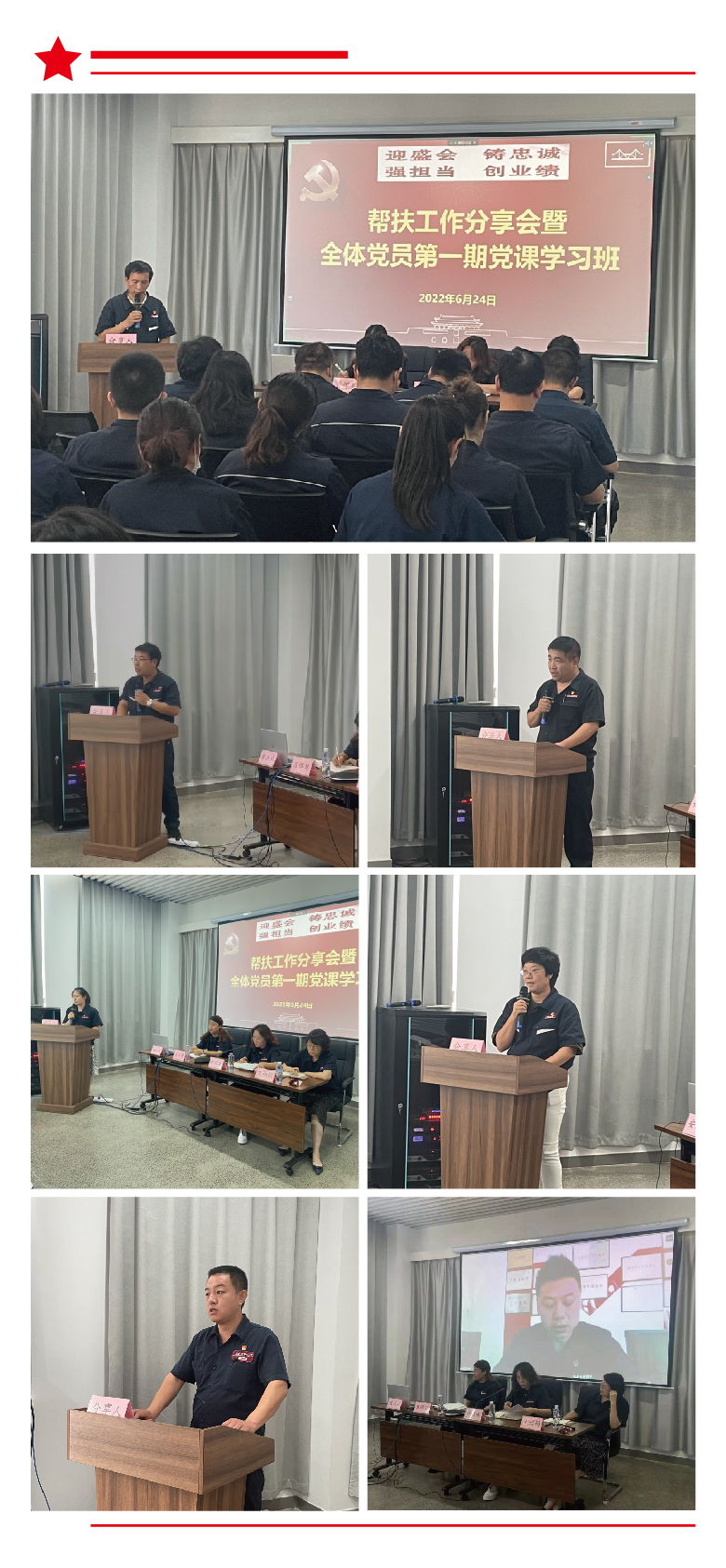 自“迎盛会、铸忠诚、强担当、创业绩”主题学习宣传教育实践活动开展以来,南宫ng28相信品牌力量-相信品牌的力量ng28-南宫28NG国际-南宫28在线登录-南宫ng28注册平台入口-南宫ng娱乐app下载-南宫28网页-南宫集团加拿大28-南宫ng娱乐app下载焊材集团党委各党支部通过支部书记讲党课、开展党员结对帮扶等多种形式开展主题党日活动,凝聚维护核心、铸就忠诚的正能量,提振干事创业、担当作为的精气神。6月24日下午80余名党员参加了线下举办的帮扶工作分享会暨全体党员第一期党课学习班。