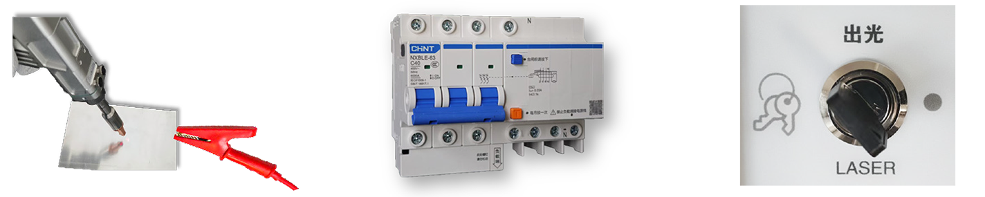 出光口接触夹有安全地夹的工件时才符合出光条件,防止激光对工件以外的物体照射。符合T/CWAN 0064-2022中13.2要求。漏电保护: